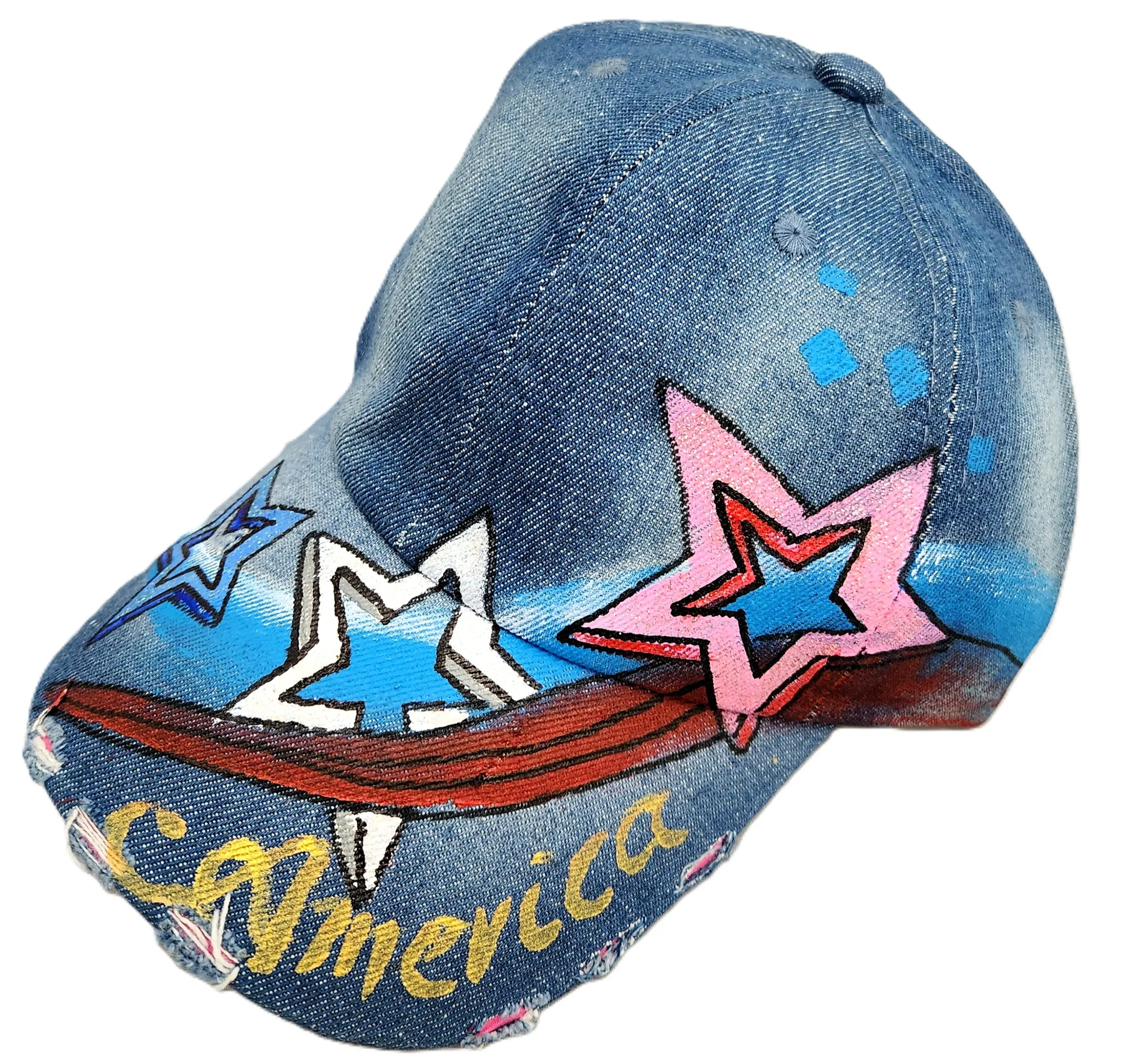 Adult Jean Baseball Cap: Painted "America w/ Stars"