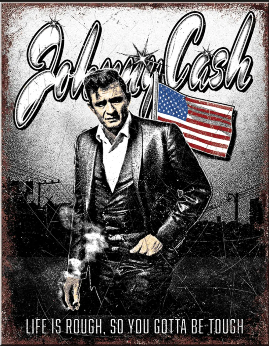 Description16"x12.5" American Made Metal Sign: Johnny Cash (USA FLAG)