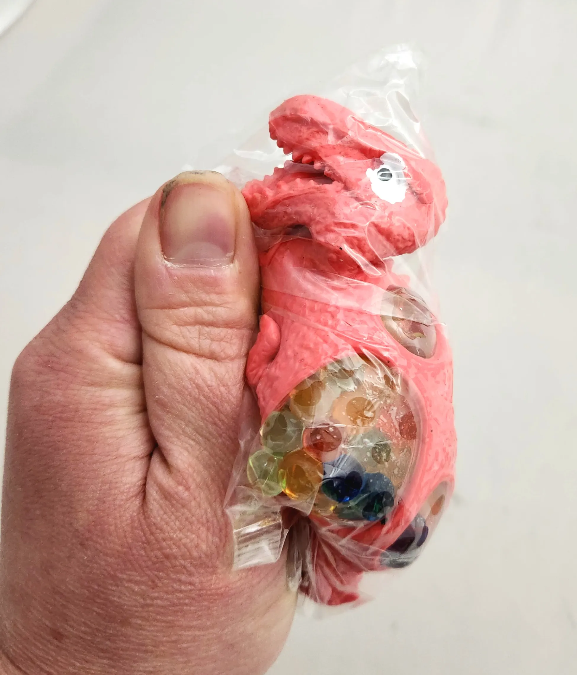 Dinosaur Squishy Squeeze Toy. Dinosaur is 3.5". 3 Asst Colors/Dinosaurs: Red, Green & Brown. One piece per poly bag. 12 pieces/color display box.